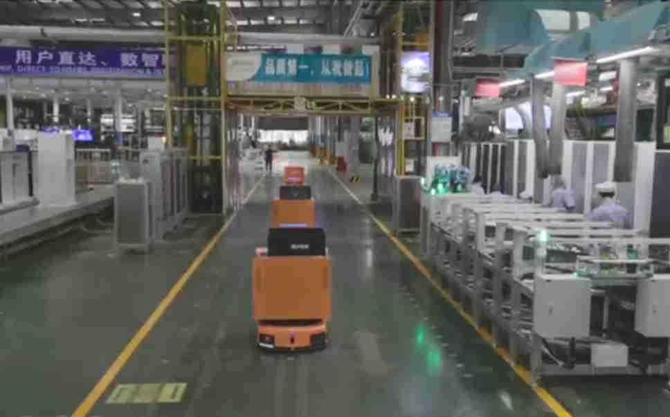 为车载冰箱物流配送打造的智能解决方案,,,包含产中物流通过潜伏举升AMR搬运至线边,,,,产后成品物流智能仓储,,,流程包含产中物流智能齐套入库,,,线边安灯叫料AMR智能配送至线边,,,成品入库、、、出库,,通过无人堆高车机器人,,,,智能仓储管理替代人工作业管理,,,实现更高存储、、、更高效率、、、、更具柔性化的解决方案。。